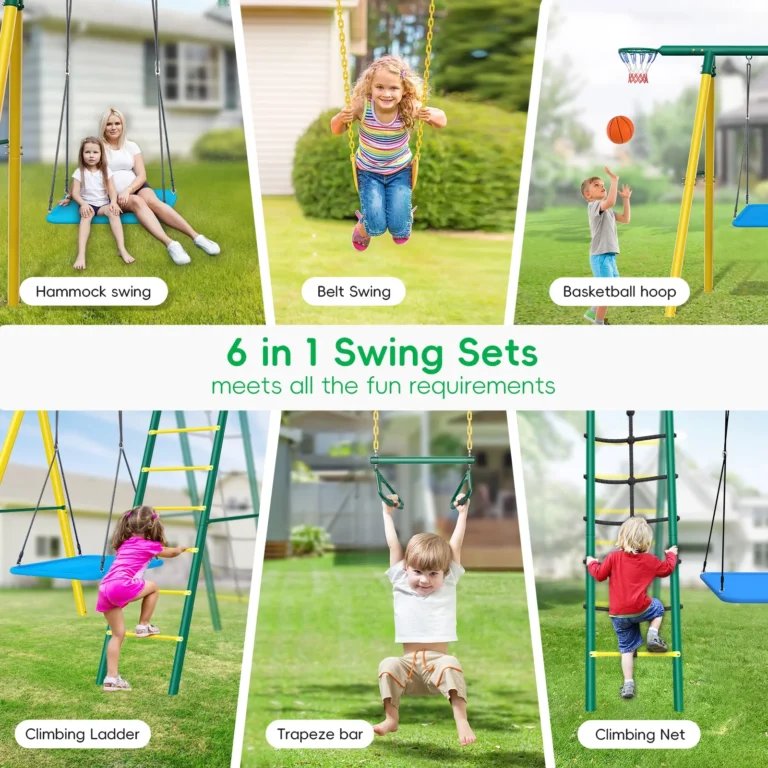 Metal Swing Sets for Backyard,Heavy-Duty Outdoor Kids Playsets for Playground