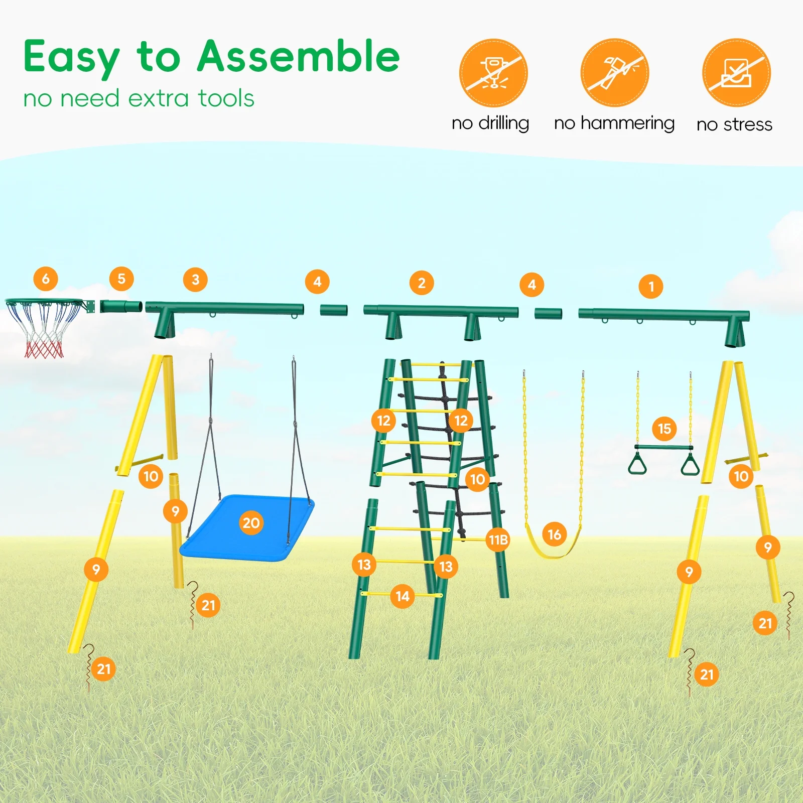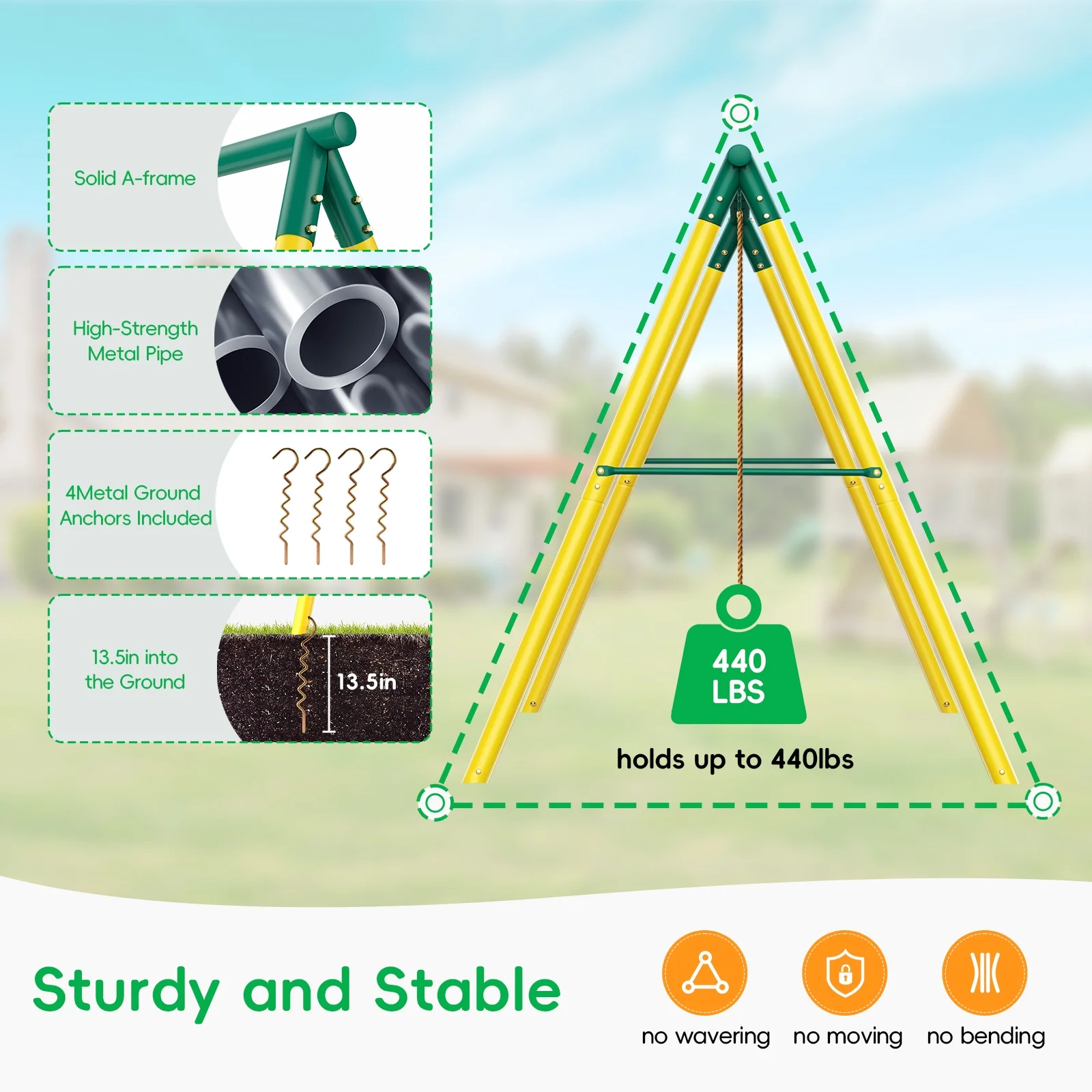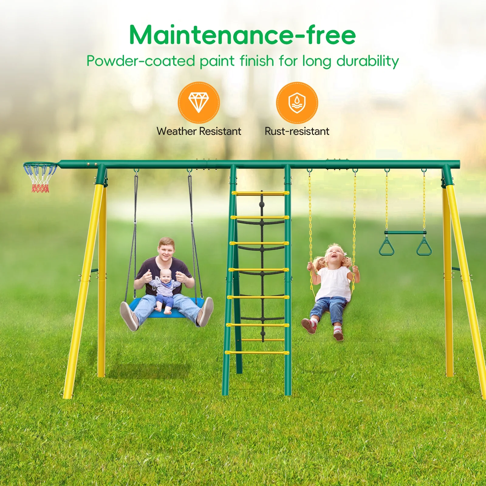 Metal Swing Sets for Backyard,Heavy-Duty Outdoor Kids Playsets for Playground